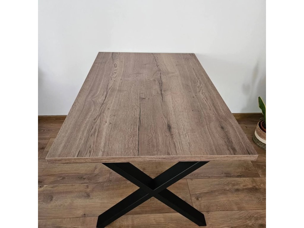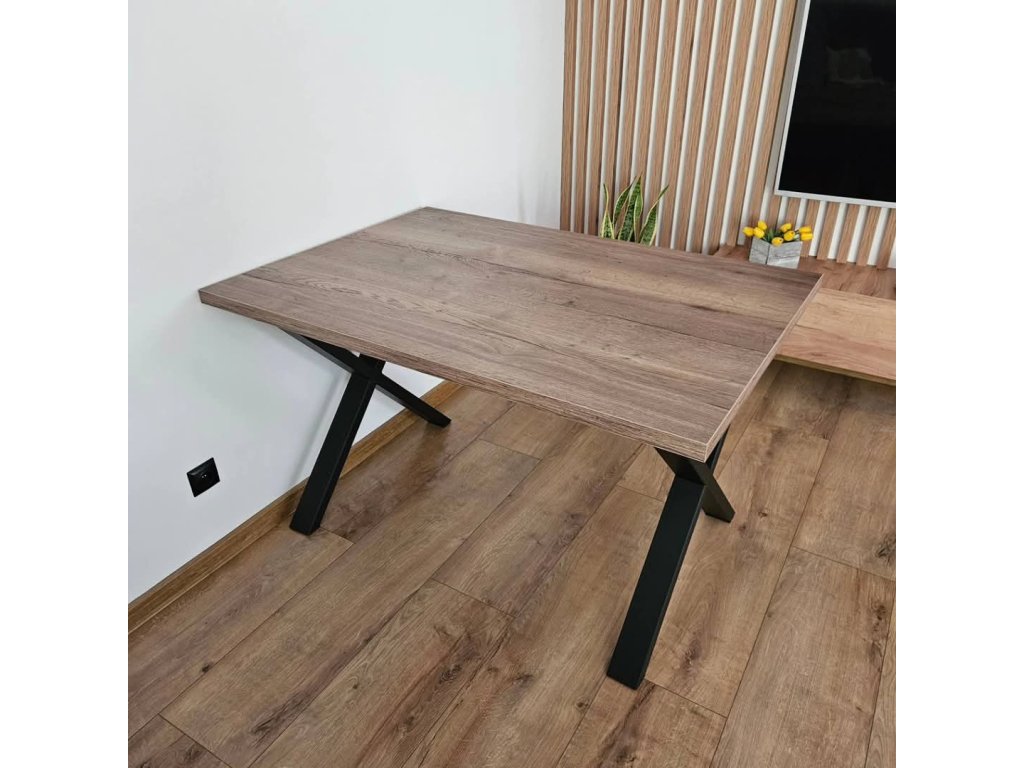 Jedálenský stôl Foxy, ktorého tvar podnože je v tvare písmena X. Podnož stola je pozváraná z pevných oceľových profilov s hrúbkoou steny 2mm a s rozmerom 80x40mm. Ako povrchovú úpravu sme zvolili kvalitnú antikoróznu farbu v odtieni 9005 - čierna matná.