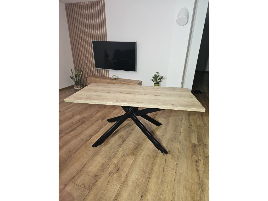Jedálenský stôl Slash ma podnož mikado s nastaviteľnými nožičkami. Podnož stola je pozváraná z pevných oceľových profilov s hrúbkoou steny 2mm a s rozmerom 80x40mm. Ako povrchovú úpravu sme zvolili kvalitnú antikoróznu farbu v odtieni 9005 - čierna matná.