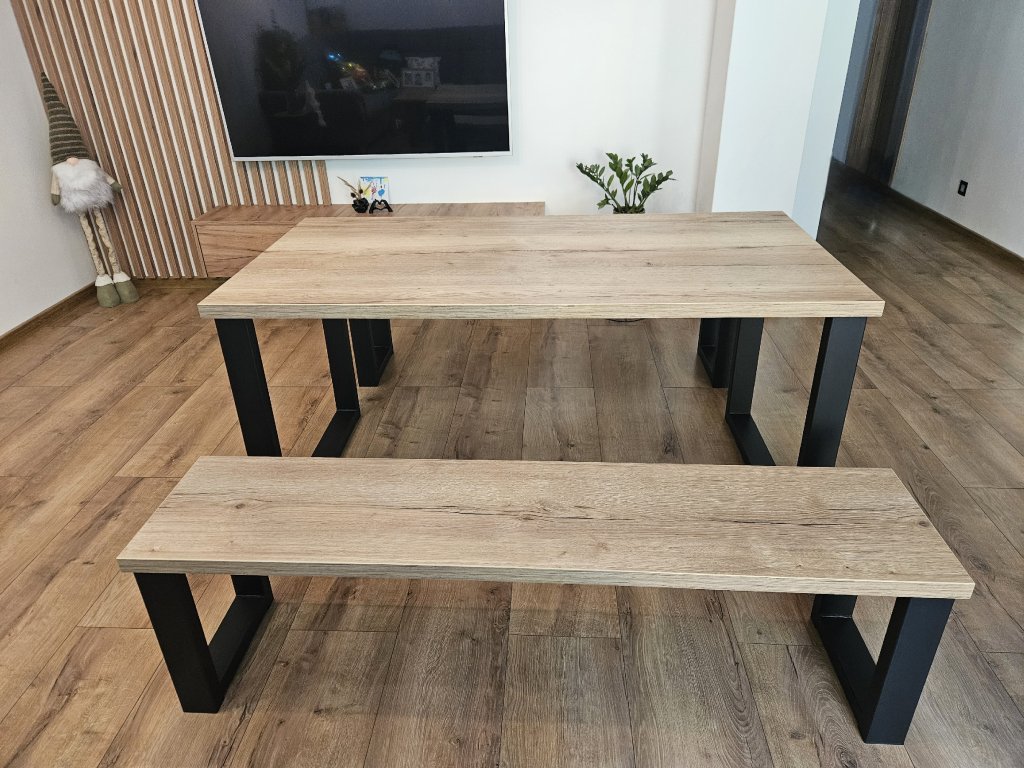 Pevná a štýlová lavica s výškou 45 cm je ideálnym doplnkom k jedálenskému stolu Cruz. Konštrukcia je vyrobená z oceľového profilu 8×4 cm a je vystužená pre maximálnu stabilitu a odolnosť voči prehýbaniu. Spojenie kovu a dreva dodáva lavici moderný industriálny vzhľad a vysokú nosnosť.