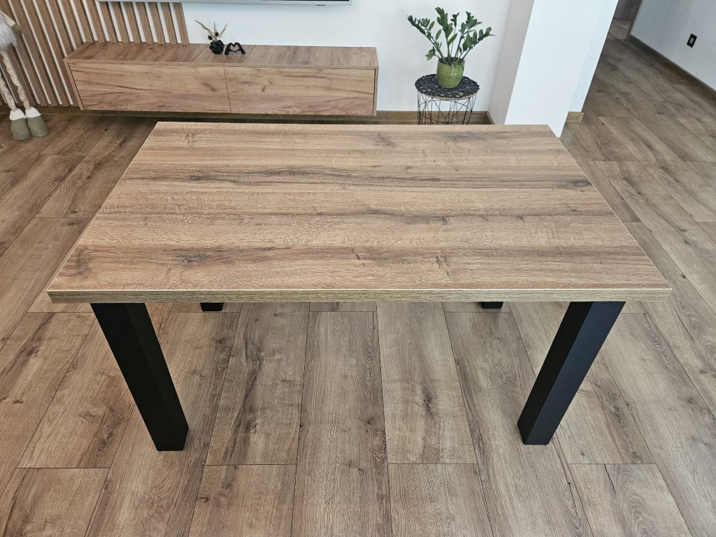 Doska stola je z laminovanej drevotriesky, je hrubá 36mm a je olepená 2mm abs páskou, pričom používame kvalitné polyuretánové lepidlá, ktoré sú odolné vode. Zo spodnej strany stola sme zvolili bielu farbu aby sme Vám vedeli zabezpečiť lepšiu cenu. Dekor zo spodnej strany môže byť po dohode za príplatok.