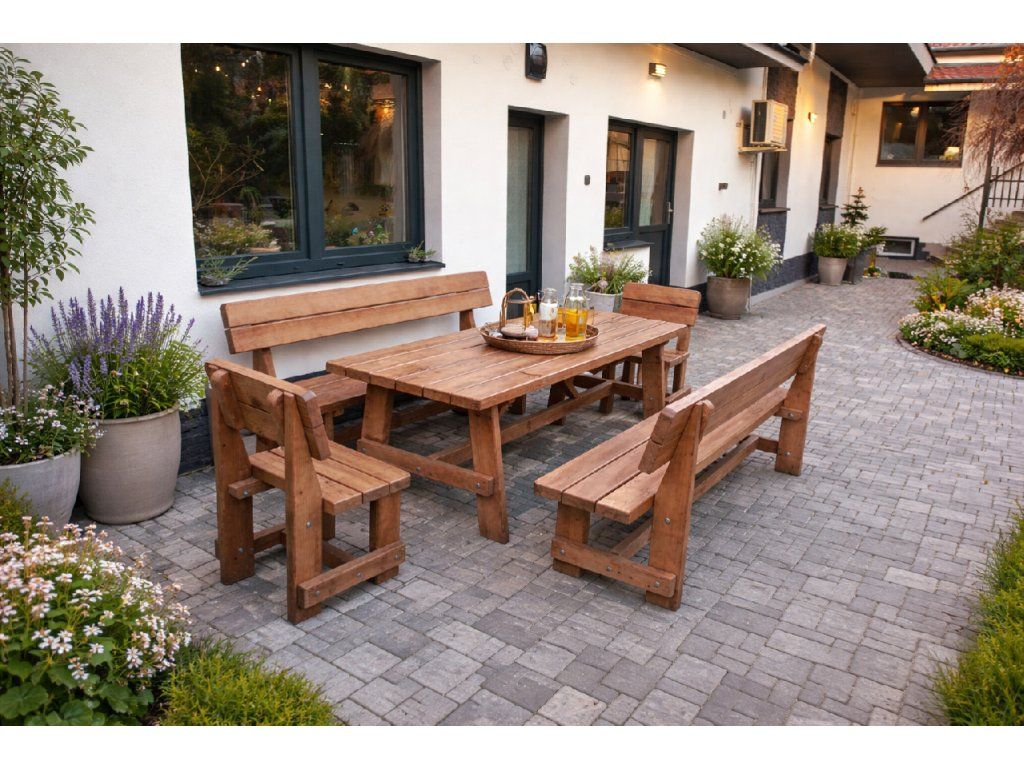 Poctivo vyrobené záhradné sedenie z masívneho jelšového dreva, ktoré vyniká svojou prirodzenou kresbou, pevnosťou a dlhou životnosťou. Tento set je ideálny na terasu, do altánku alebo priamo do záhrady, kde vytvorí príjemné miesto na oddych s rodinou či priateľmi.